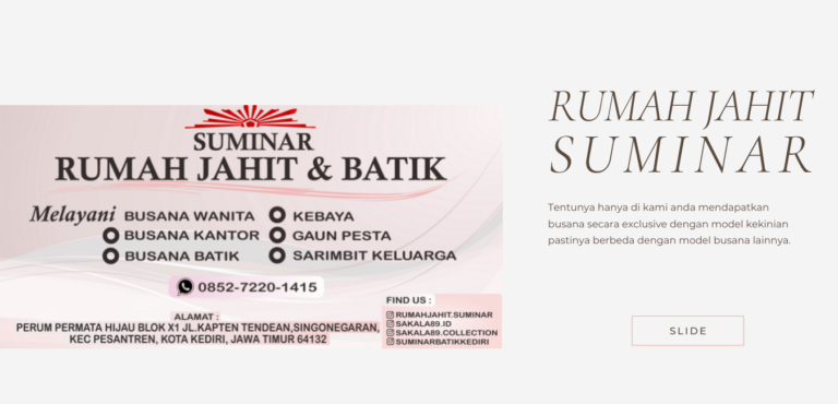 Rumah Jahit Suminar Kediri – Adalah salah satu penjahit terbaik di kota Kediri. Mengedepankan pelayanan yang ramah, hasil jahitan yang rapi dan kuat serta pengerjaan yang tepat waktu.